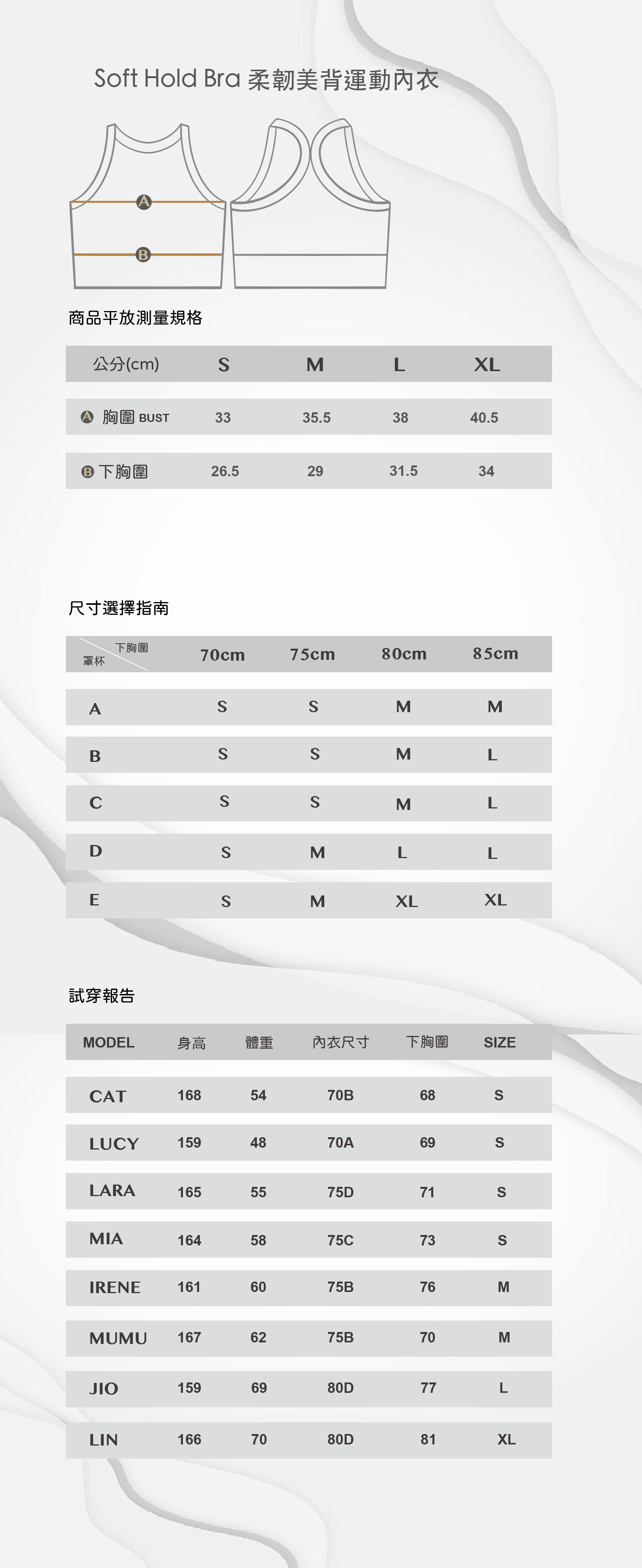 *固定式胸墊,貼合自然胸形,輕巧不易變形,減少位移困擾