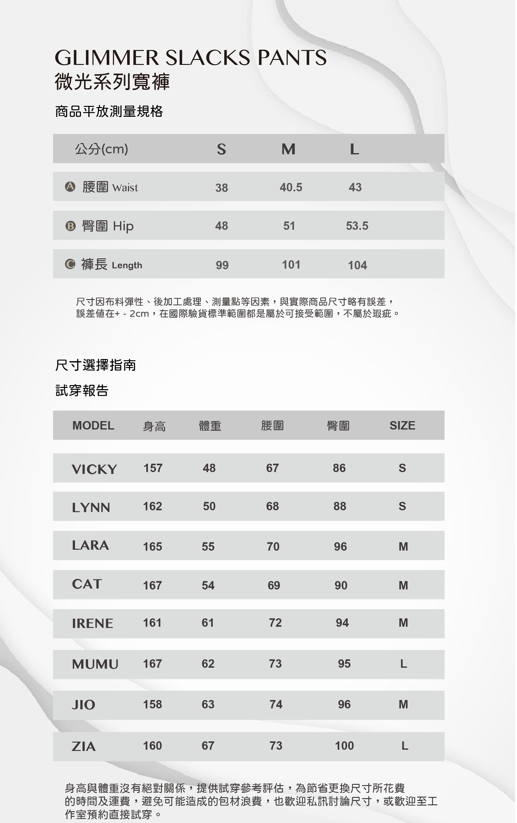 喜歡略顯臀圍線條的可以選平時穿的尺碼