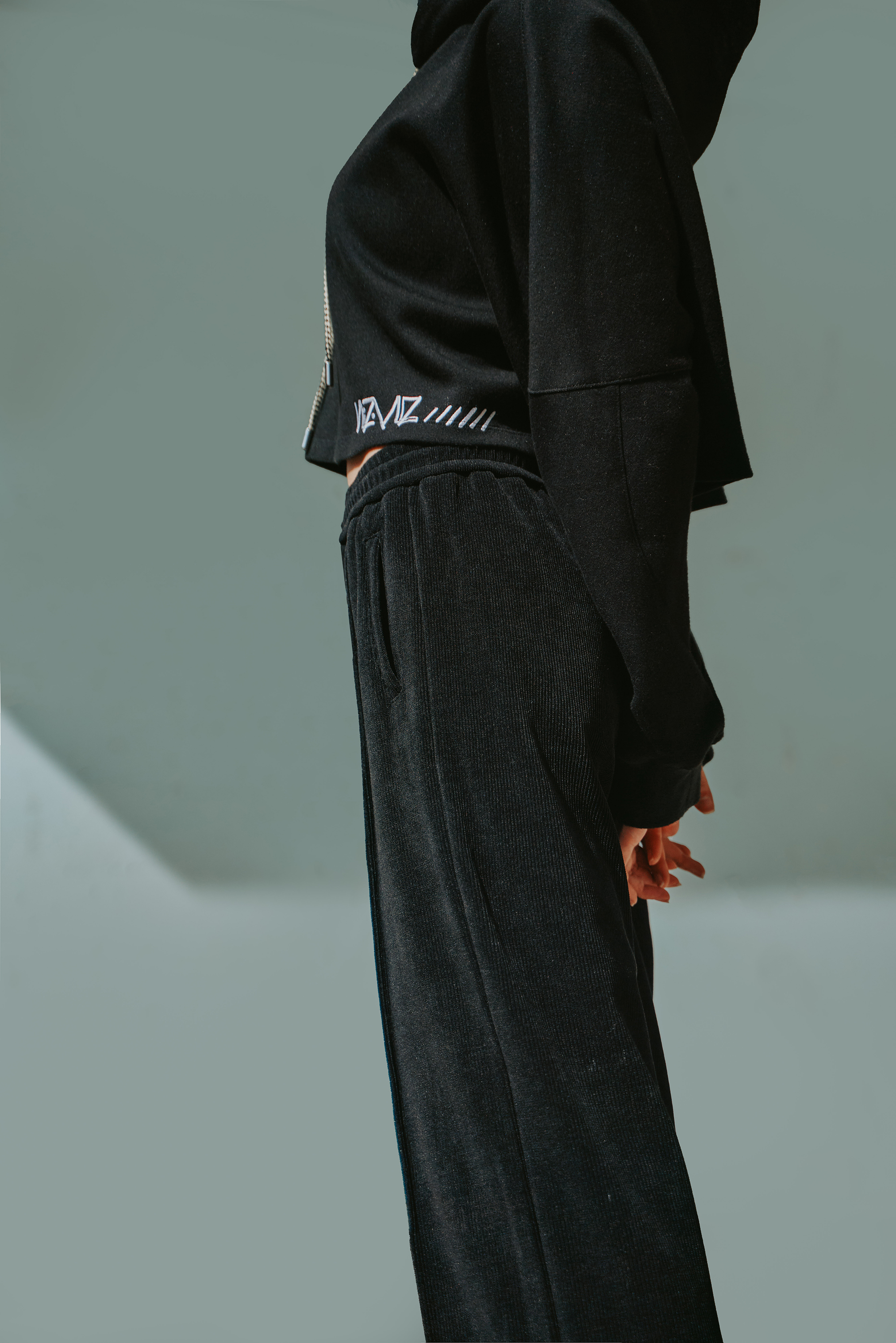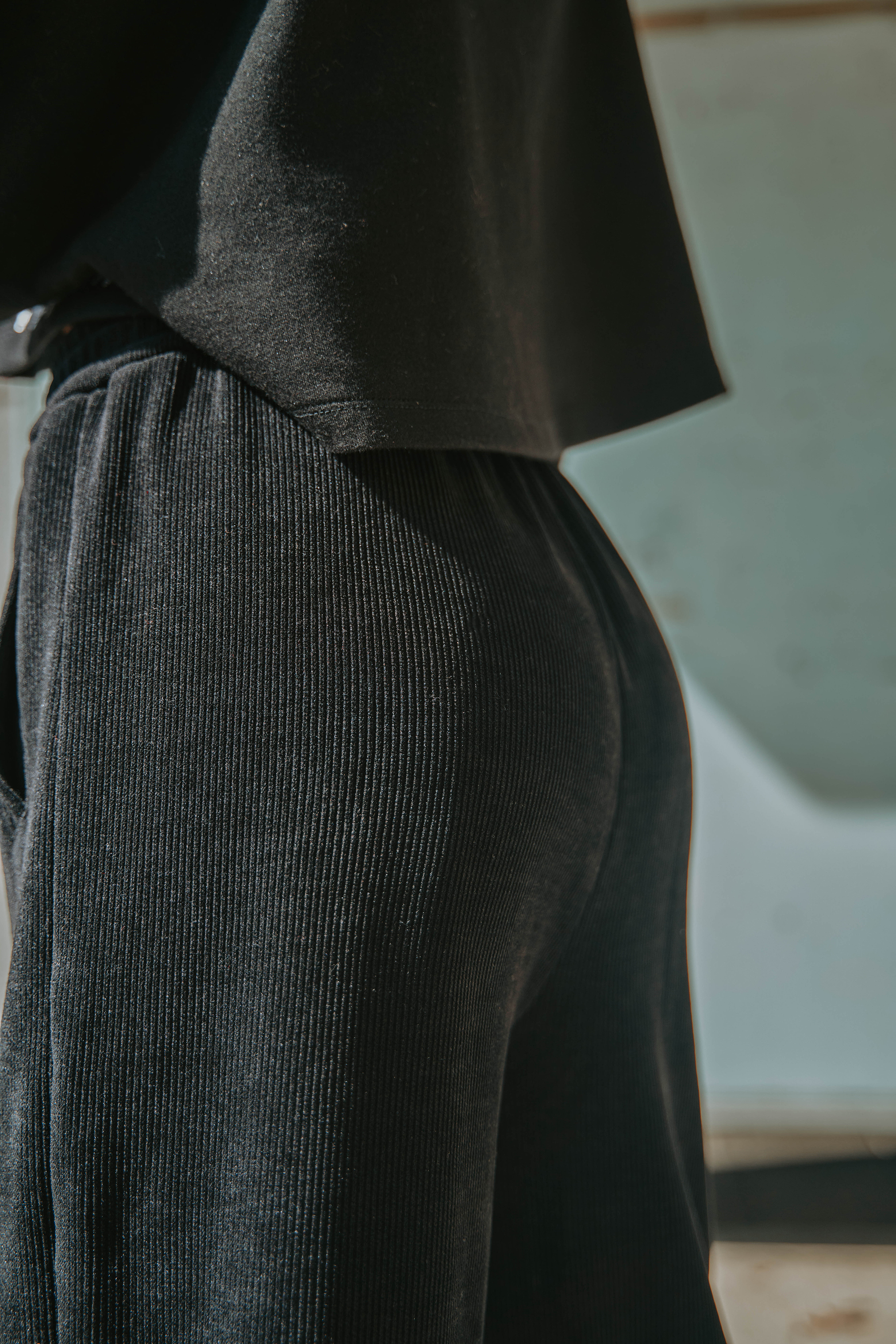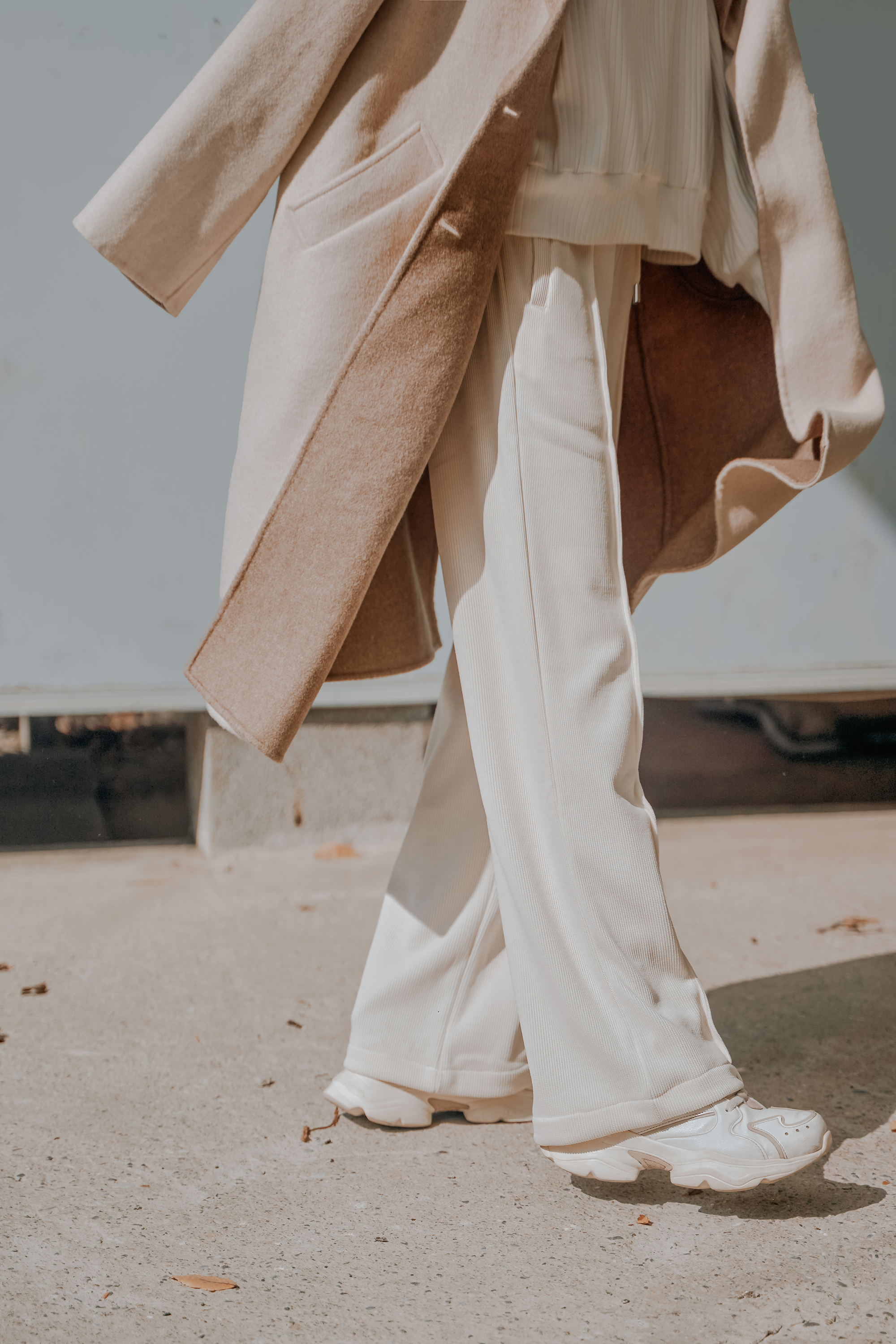 細緻絨直紋休閒寬褲